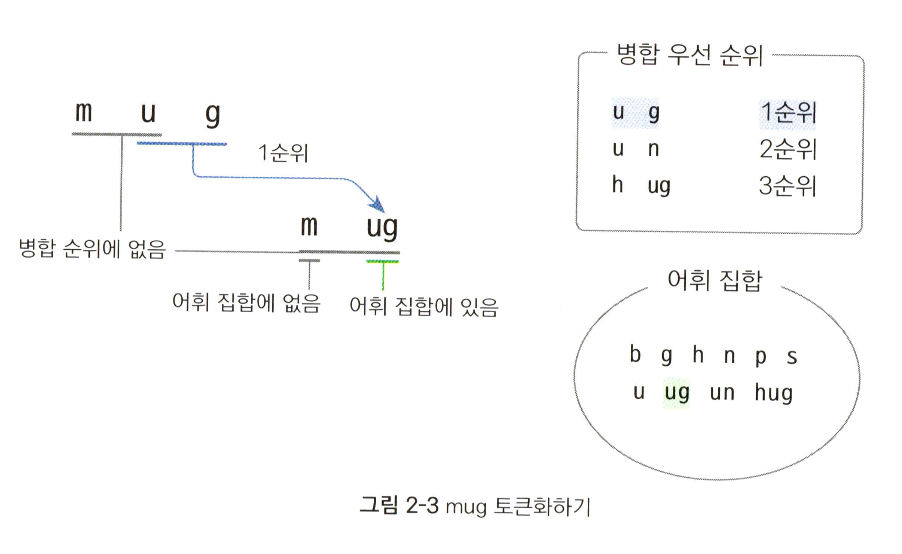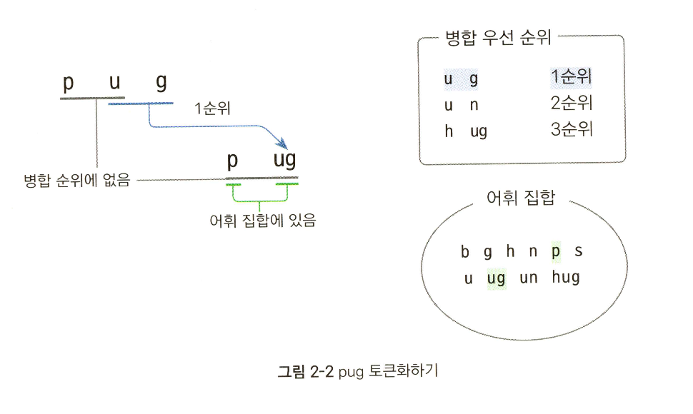 어휘 집합과 병합 우선순위를 통해 토큰화를 수행한다.
