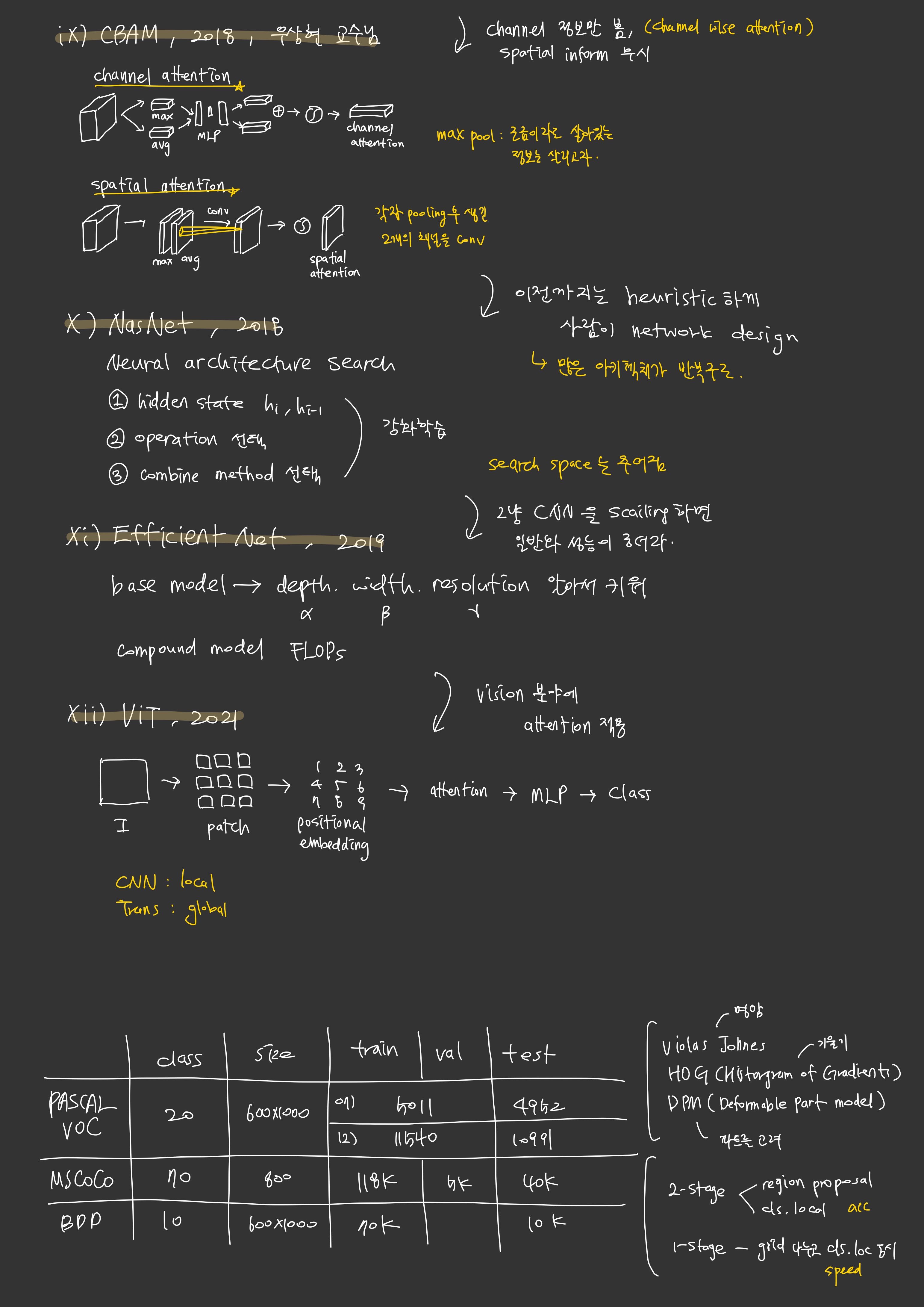 LeNet, AlexNet, ZFNet, VGGNet, GoogleNet, ResNet, DenseNet, SENet, CBAM, NasNet, EfficientNet, ViT