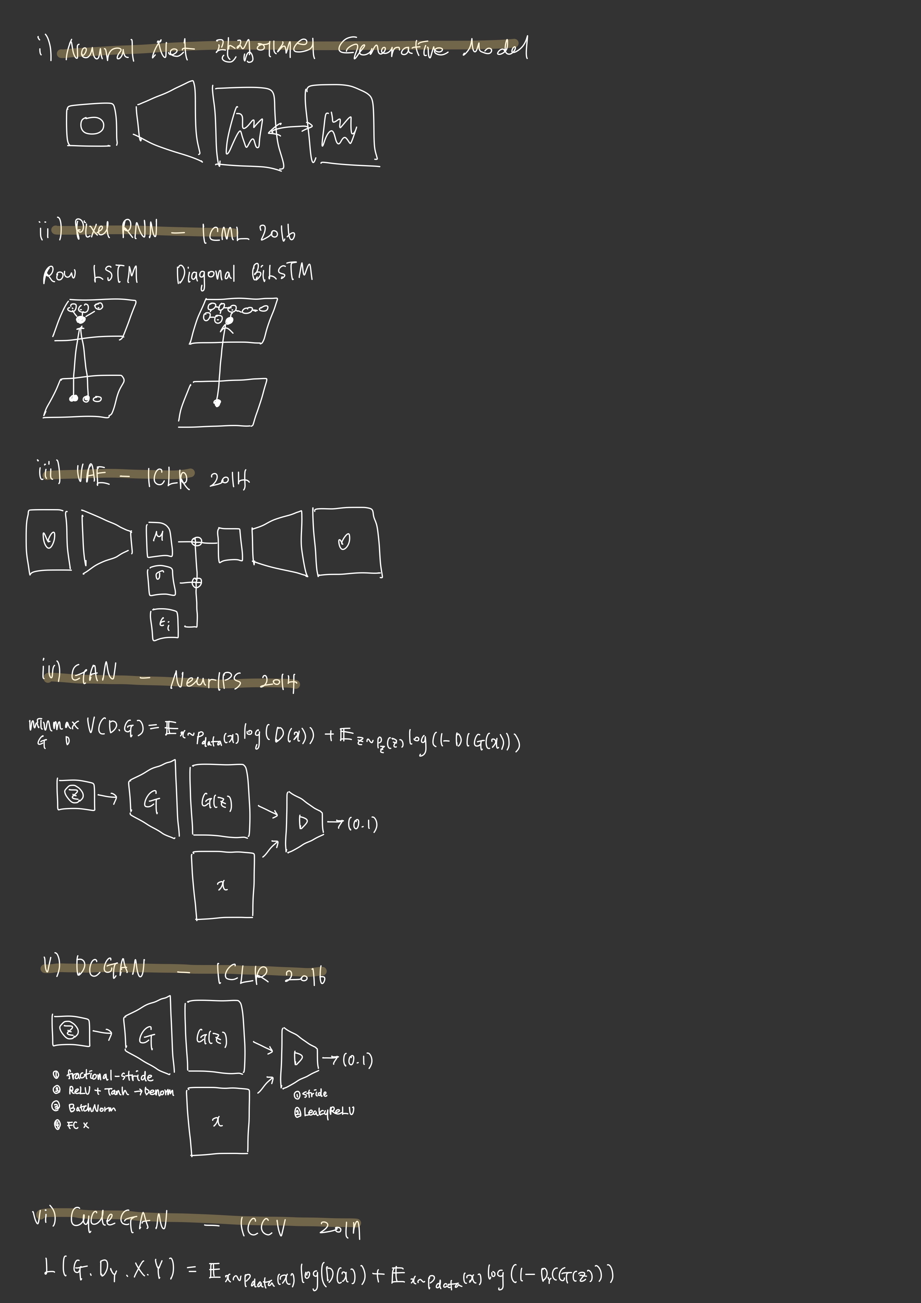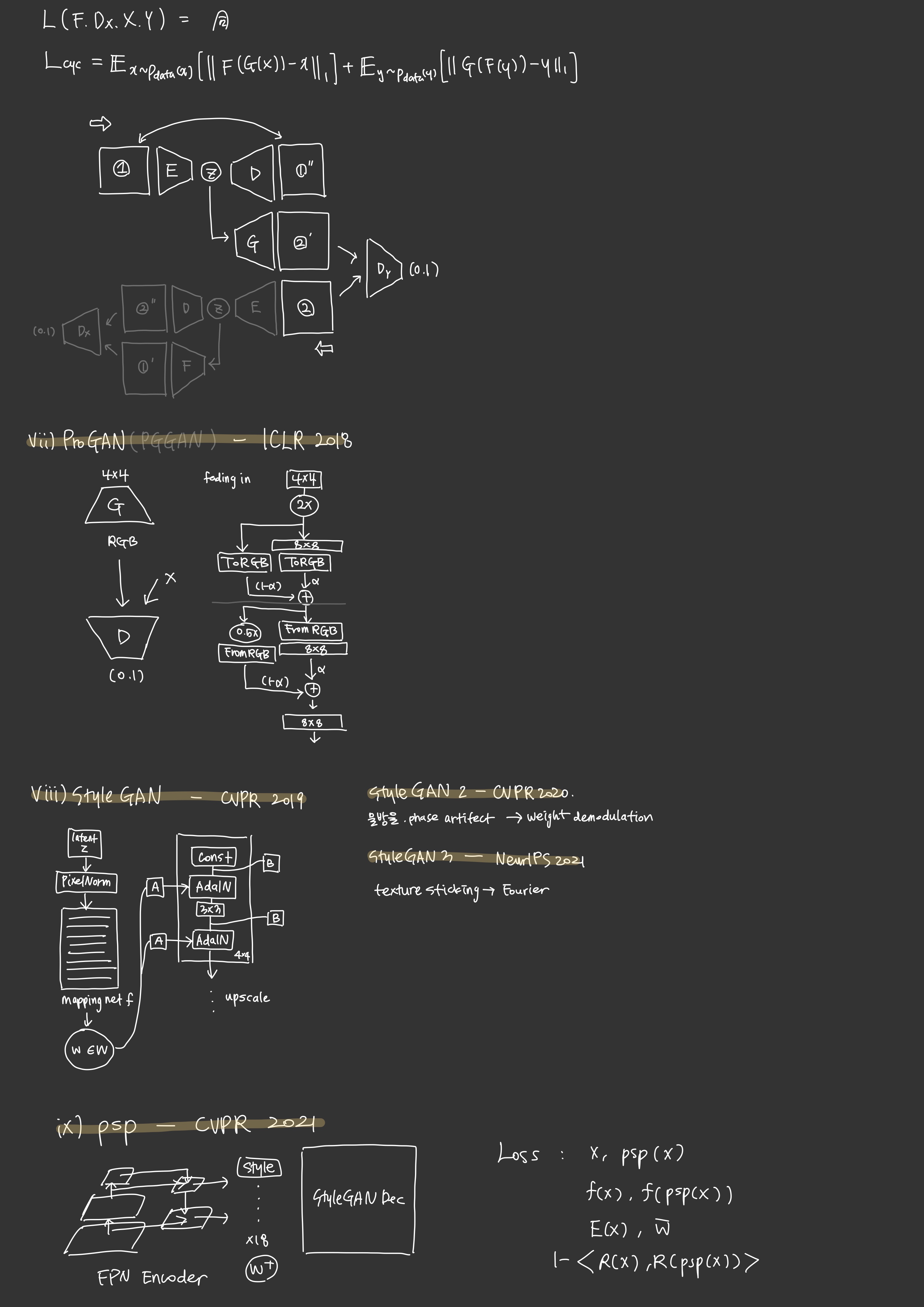 PixelRNN, VAE, DCGAN, CycleGAN, ProGAN, StyleGAN, psp, ReStyle