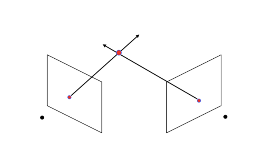 - pinhole 카메라 모델에서 depth를 추정하기 위해서는 두 카메라 사이의 calibration, 3d 상의 한 point에 대해 정확한 correspondence를 알아야 함