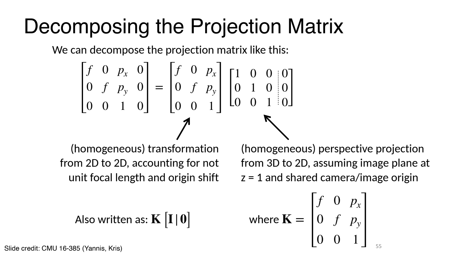 - 2d 이미지가 얼마나 이동(translation)하고, 확대(scailing)되고, 기울어졌는지(shear)에 대한 Parameter로, 카메라 렌즈와 센서 위치에 의해 결정되어짐