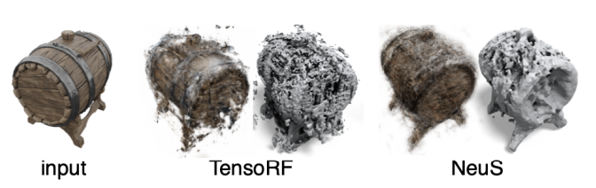 따라서 기존의 최적화 기반 접근 방식보다는, 일반화 간으한 SparseNeuS 기반 SDF 재구성 방법을 사용하도록 하였다. 이는 multi-view streo, neural scene representation, volume redering을 결합할 수 있다.